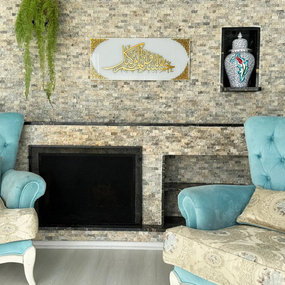 Bring your home to life with our "Hasbunallah Wa Ni'Mal Wakeel" Islamic wall art made from tempered glass and featuring elegant Arabic calligraphy.